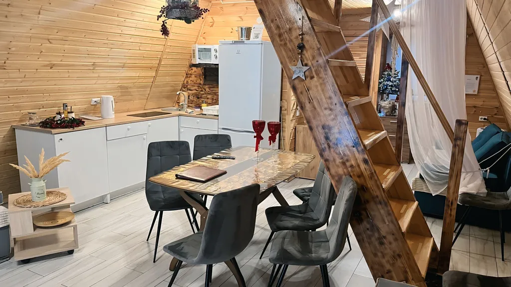 Удобства: ванная комната с феном, наборами полотенец и гигиеническими принадлежностями. В доме установлены теплые водяные полы с регулировкой для идеального климата в любое время года.