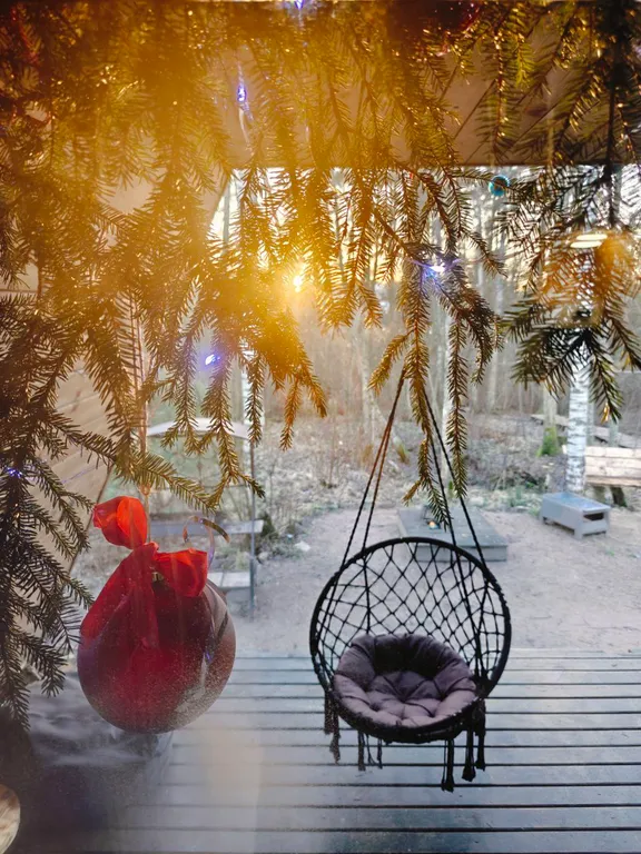 собственный выход в лес: дом расположен так, что лес начинается прямо за порогом. На территории высажено более 50 хвойных деревьев.