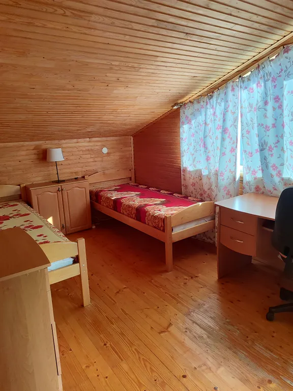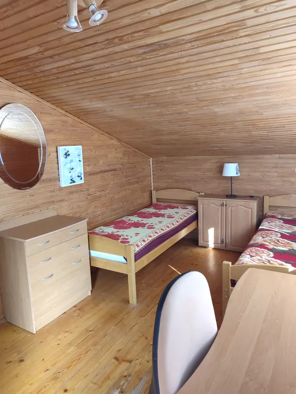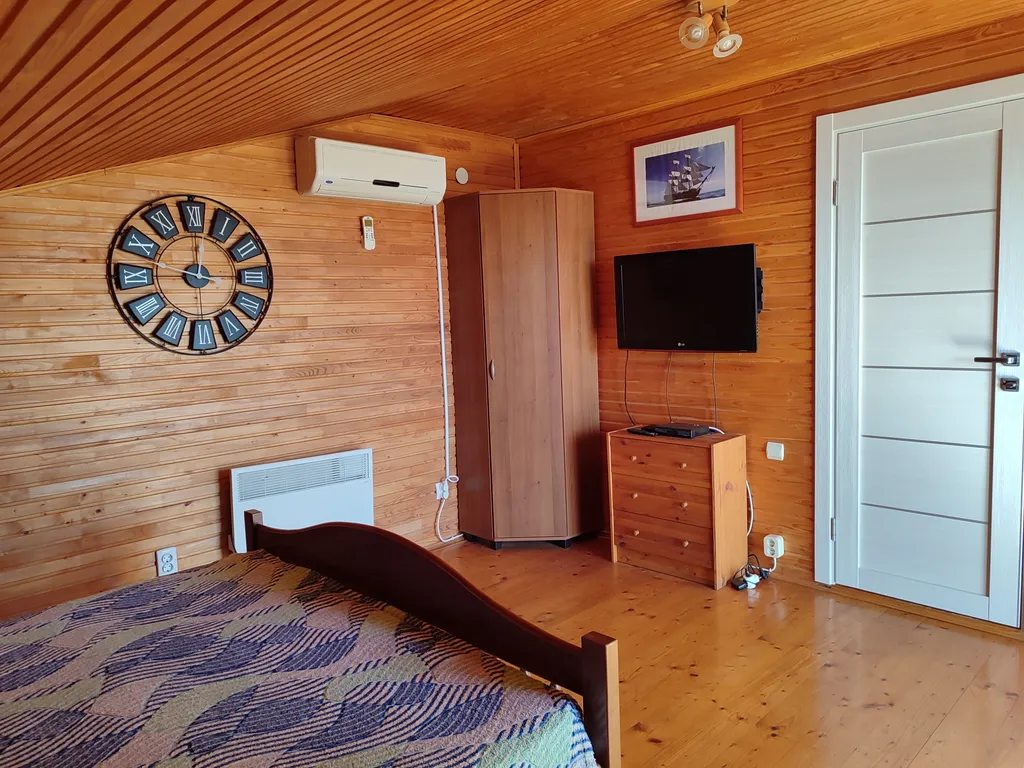 Дом идеально подходит для размещения 6 человек, возможно размещение и 8 гостей, если использовать диван в гостиной.