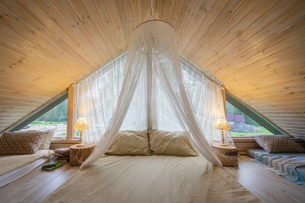 Лофт с большим витражным окном (1 двуспальный и 2 односпальных матраса);