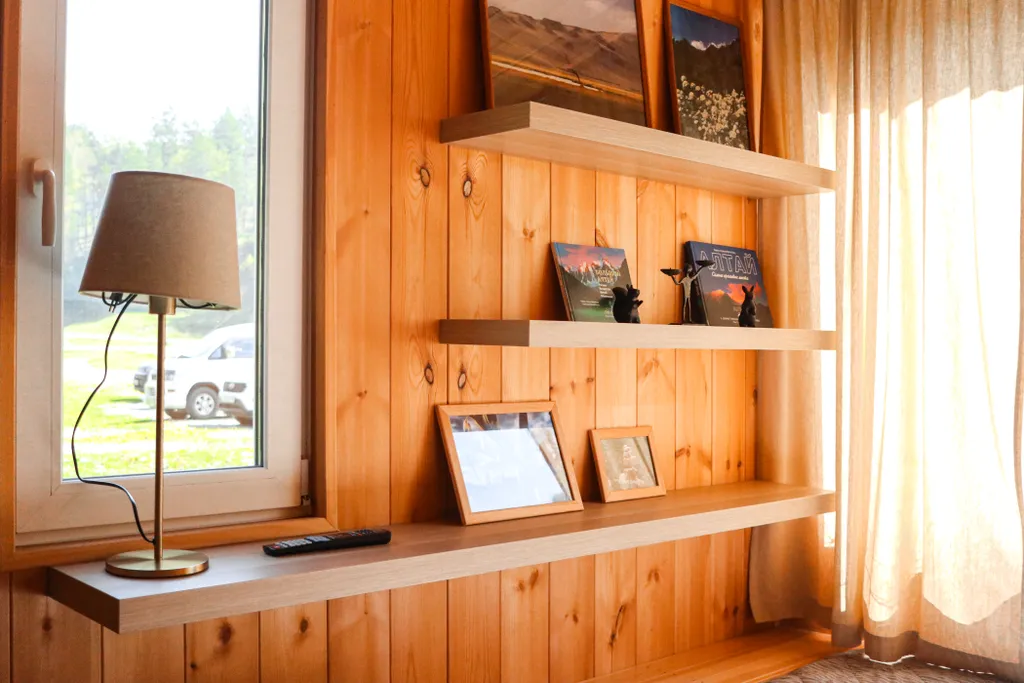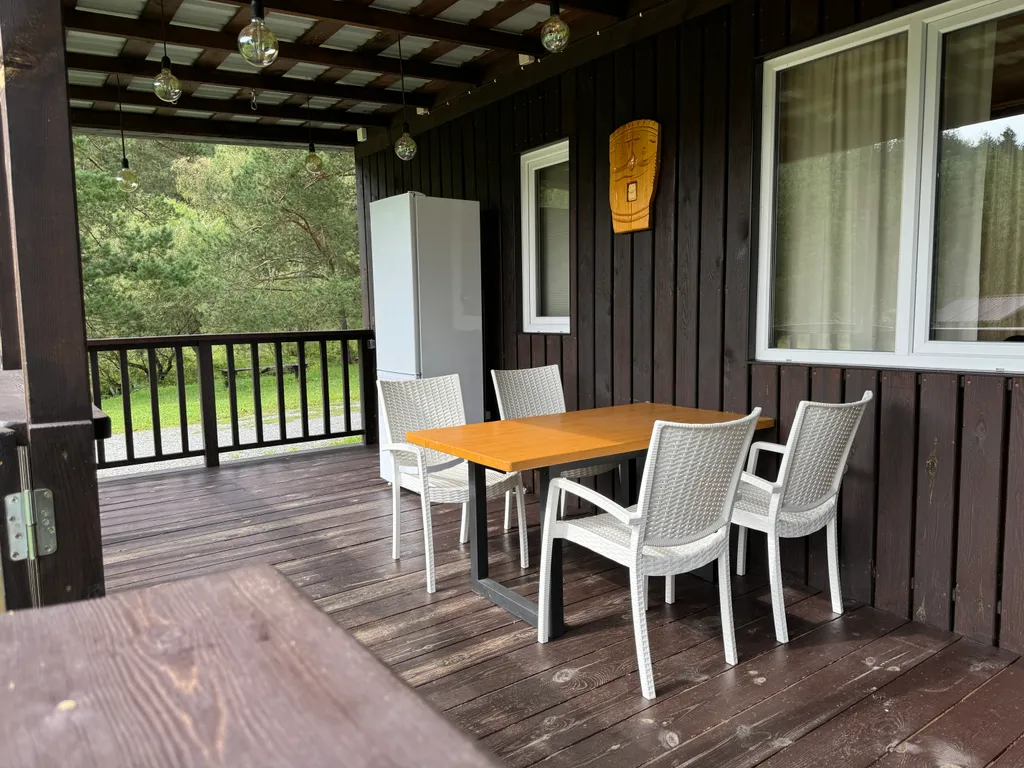 На территории базы работает кафе-столовая с 9:00 до 21:00. На открытой веранде кафе возле реки круглосуточно бесплатно доступны микроволновка, термосы с кипятком и травяной чай. Кухни для гостей нет. Возможности готовить самим нет. Но есть платная мангальная зона.