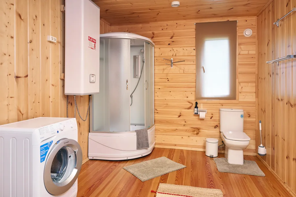 - Ванная комната (душевая кабина, раковина, унитаз, бойлер горячей воды, фен, сушилка для белья, комплект полотенец)