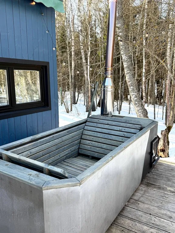 При желании можно попариться в баньке (в 5 минутах езды от дома), которая бронируется и оплачивается отдельно: 2 часа — 6 000 ₽, далее каждый час — 2 500 ₽. Парение в бане с растопкой бочки фурако 4 часа — 12 000 ₽.