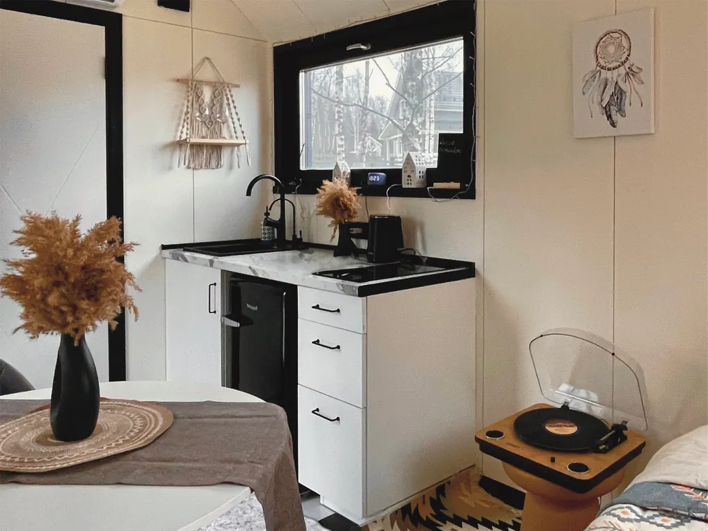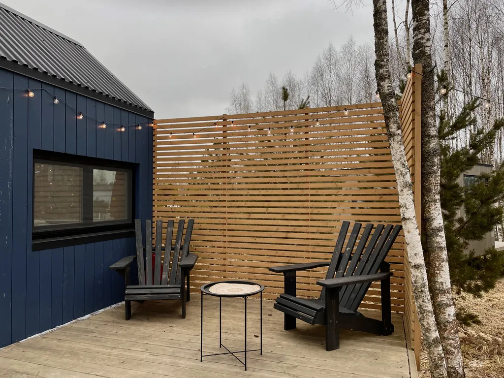 Для вечерних просмотров домик оборудован проектором и экраном, для меломанов – музыкальным проигрывателем.