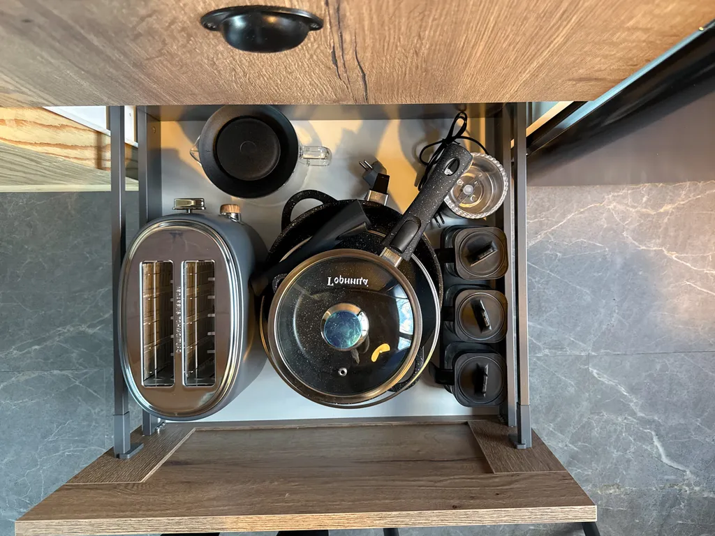 В доме есть всё для комфортного проживания: кондиционер, холодильник, варочная панель, чайник, кофемашина, тостер, микроволновая печь. Полный набор посуды и столовых принадлежностей. Соль, сахар, чай-кофе, растительное масло — всегда в наличии.