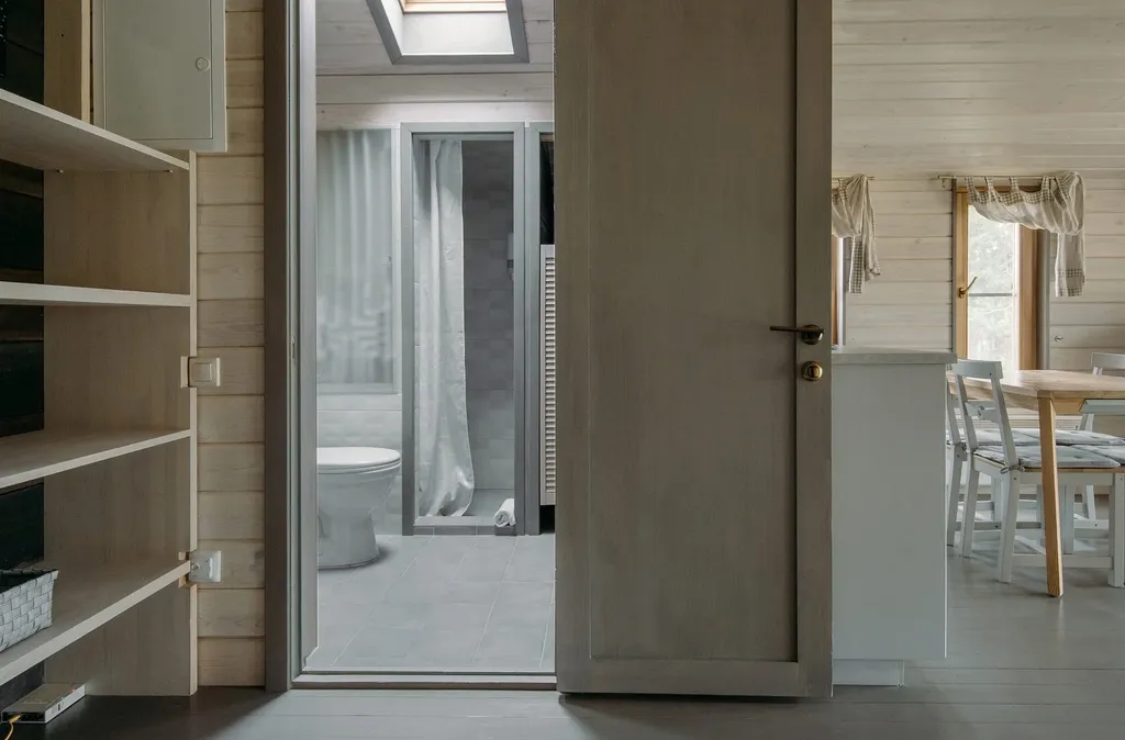 Дом оборудован санузлом с душевой кабиной, комплектом полотенец.