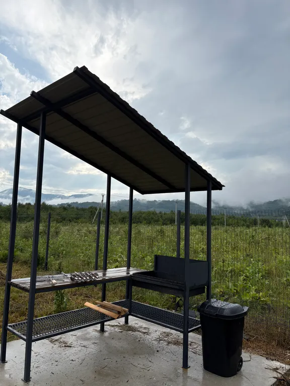 На участке имеются оборудованные мангальная и костровая зона с шезлонгами.