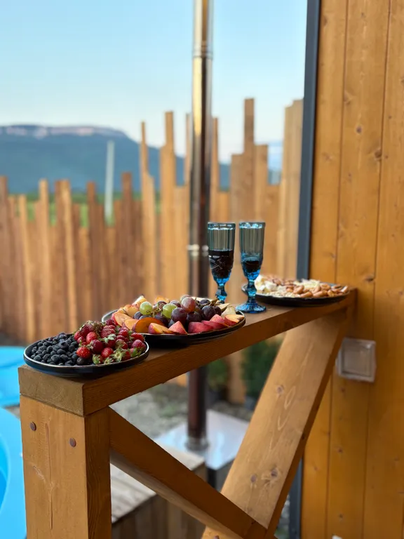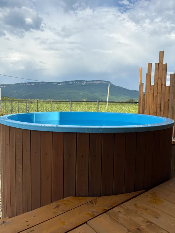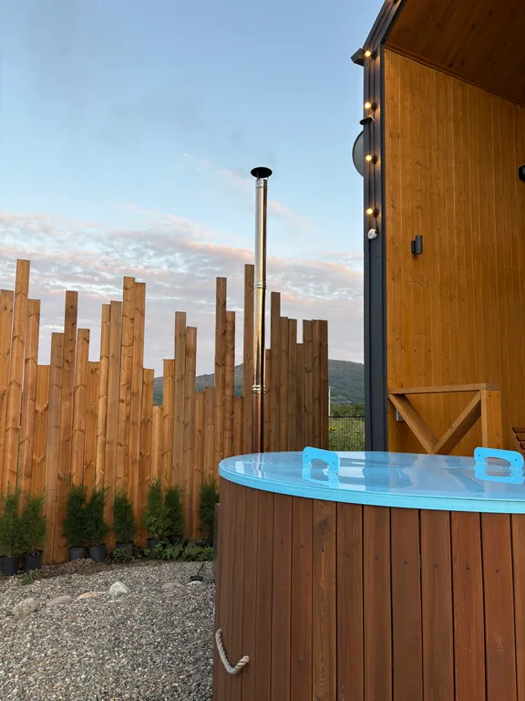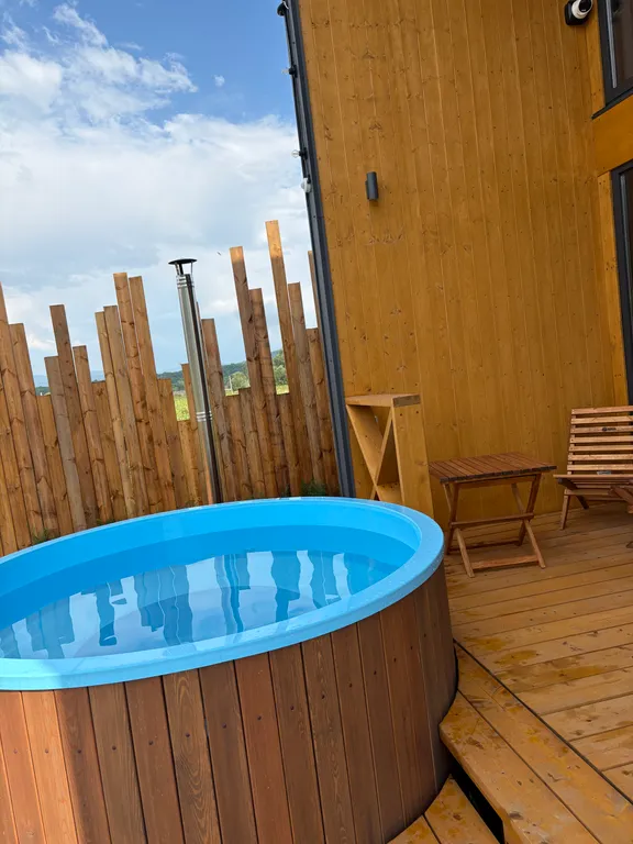 Также доступна (включена в стоимость аренды) купель диаметром 2 метра, которую можно использовать как мини-бассейн в летнее время года. Подогрев купели (дровяная печь) за доп. плату.
