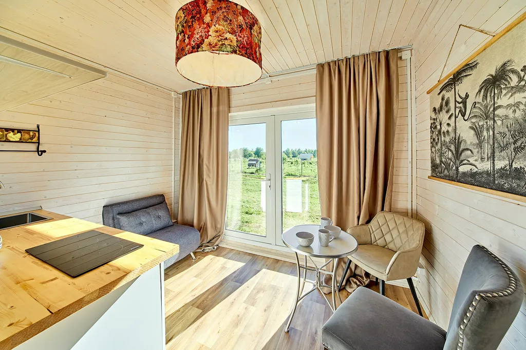 В небольшой кухне вас ждут столик и мягкие стулья, а также мини-холодильник с морозильной камерой, варочная панель на 2 конфорки, чайник, необходимая посуда (если имеющейся посуды будет не достаточно, просто скажите нам).