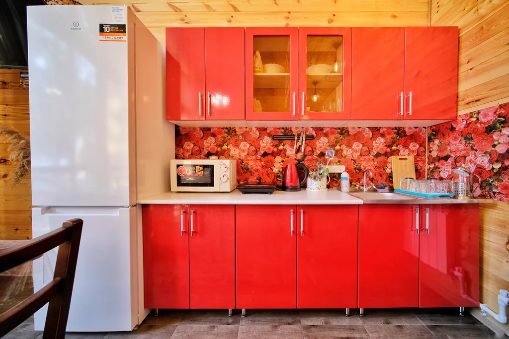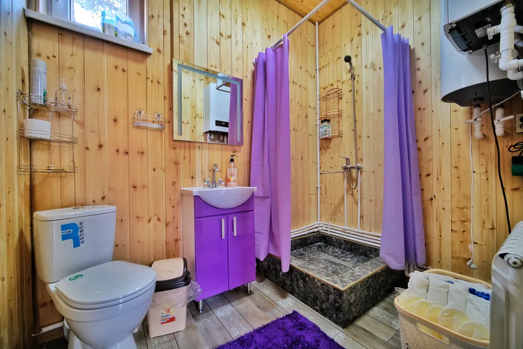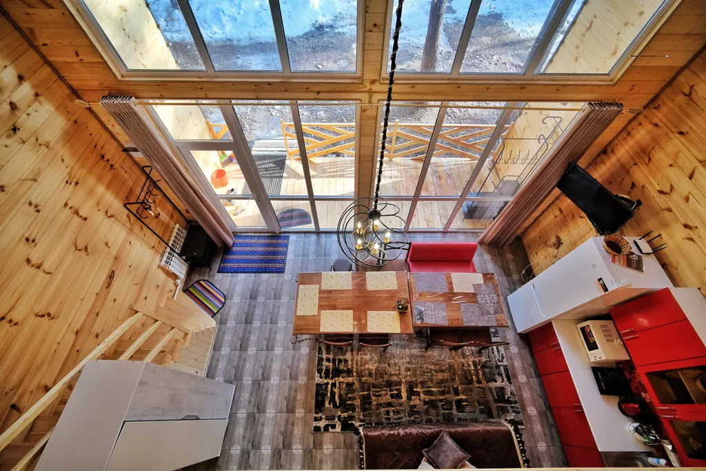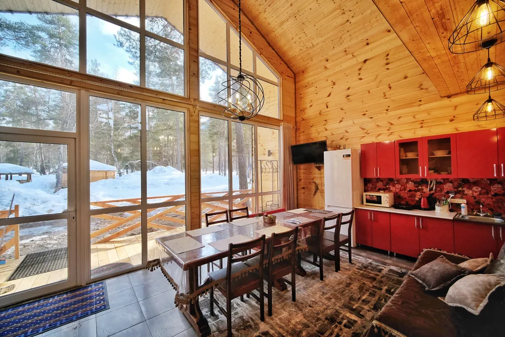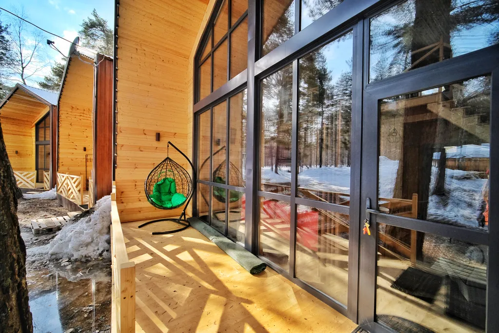 В числе удобств — микроволновая печь и эл. чайник. Гости могут отдохнуть на собственной террасе и воспользоваться принадлежностями для барбекю. Мангальная зона рядом. Летом на территории обустроена детская игровая площадка. Зимой в шаговой доступности горка для катания на тюбинге. Парковка бесплатная рядом с виллой