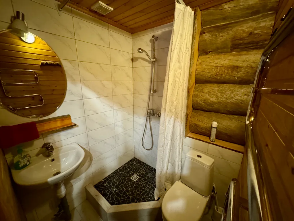 В коттедже: четыре комнаты с индивидуальными санузлами, (№1 - Двуспальная кровать + диван, №2 - Две односпальные кровати, №3 - Двуспальная кровать, №4 - двуспальная кровать+двухъярусная кровать).