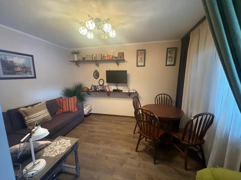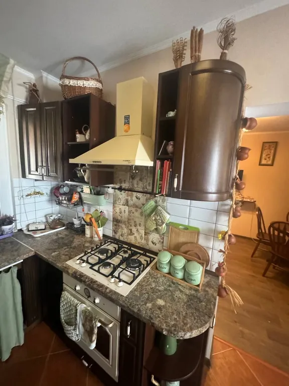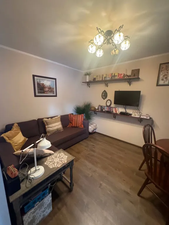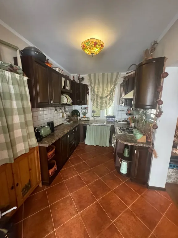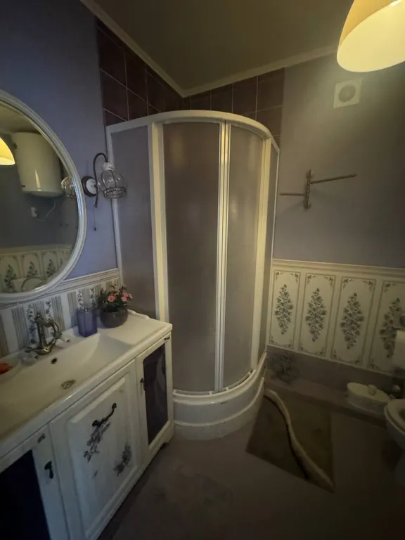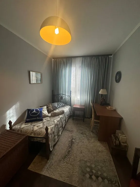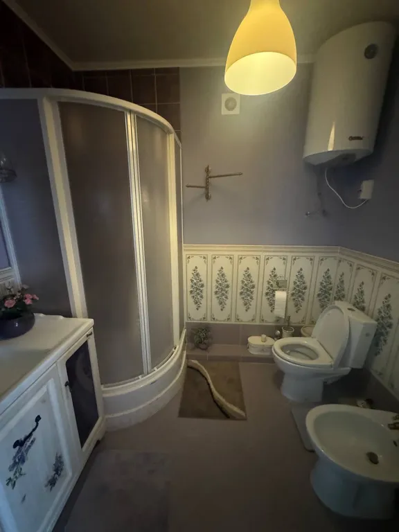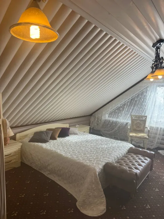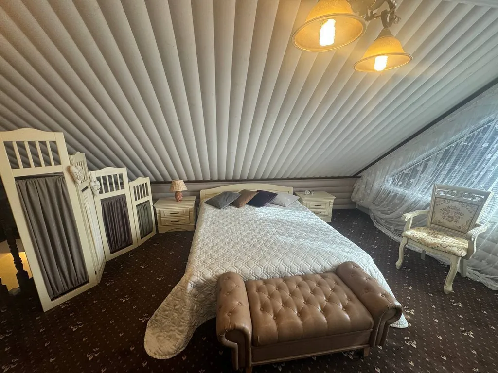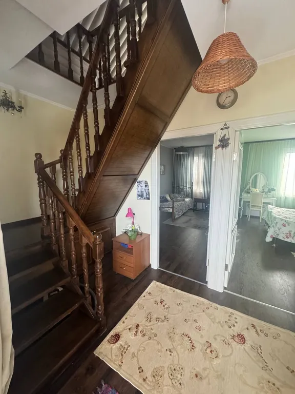 На первом этаже кухня гостиная с большим диваном ( раскладывается) на втором этаже две спальни, детская и взрослая, санузел, на третьем этаже прекрасная спальня.