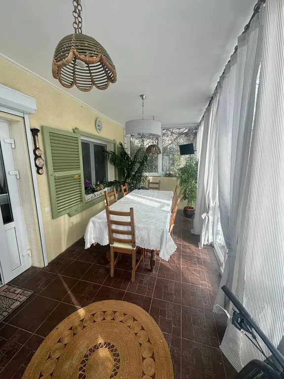 Уютный зеленый двор с мангальной зоной, беседкой, качелей. Дом рассчитан на компанию или семью до 7 человек.