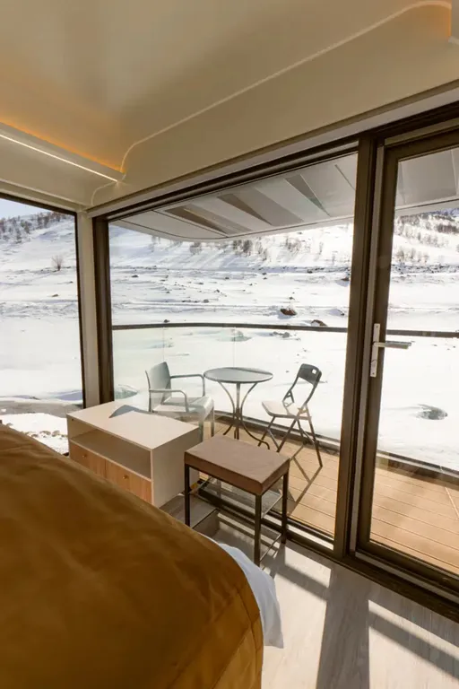 Панорамные окна, эргономичная мебель, удобная двуспальная кровать, зона отдыха с раздвижными креслами, ванная комната и персональная терраса.