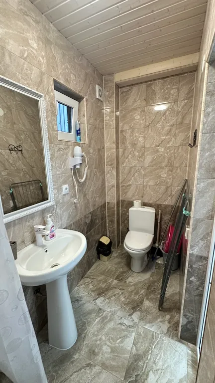 Санузел: душ, туалет, сушилка для белья, фен, моющее средство для рук.
