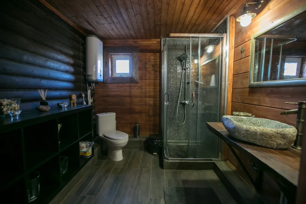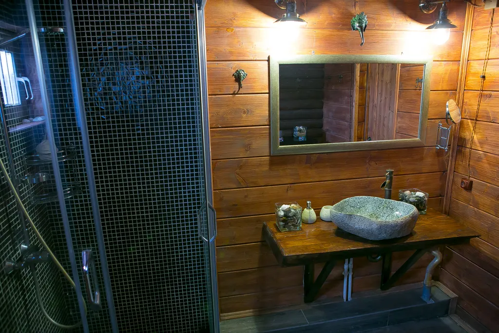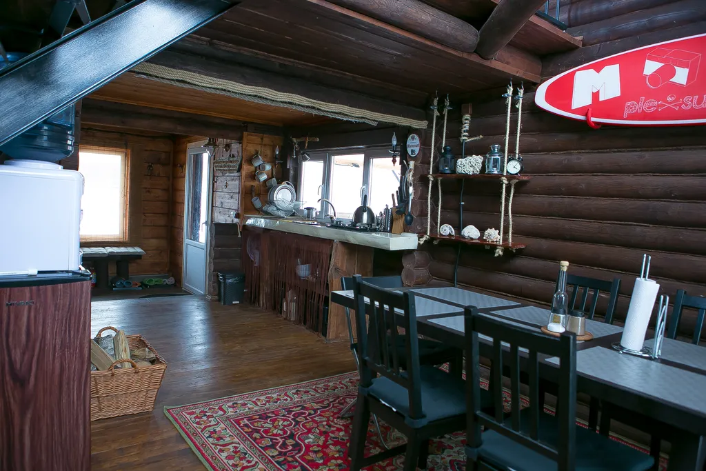 В доме есть все условия, отопление, горячая -холодная вода, душевая кабина, полотенца, белье. Кухня оборудована встроенной газовой панелью, холодильник, чайник, посуда для приготовления, а так же для сервировки стола, приборы, стаканы ит. п. кухонный стол и стол Кухня совмещена с гостиной. имеется выход на террасу. Все комнаты оборудованы новой мебелью. В доме парная вместимостью на 6-х человек. Просторный и очень уютный двухэтажный дом, с баней-парилкой ждет вас! На втором этаже есть две жилые комнаты с панорамными окнами, и с обогревом, так что можно приезжать круглый год и в любую погоду. Можно расположиться с комфортом до шести человек. На первом этаже есть конечно же - баня, а так же кухня, холл, ванная комната и большая веранда, где можно организовать BBQ. Стоянка.