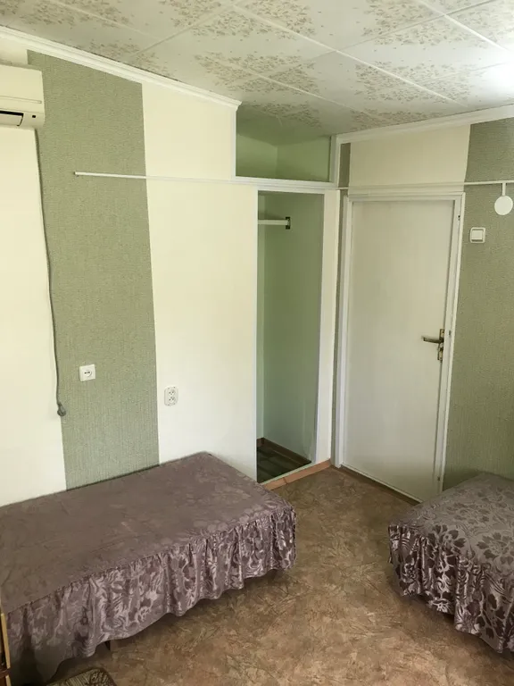 Гостевой домик находится в спальном районе, до моря 7-10 мин пешком. Пляж песчанный дно моря пологое. Рядом магазины, рынок, парк.