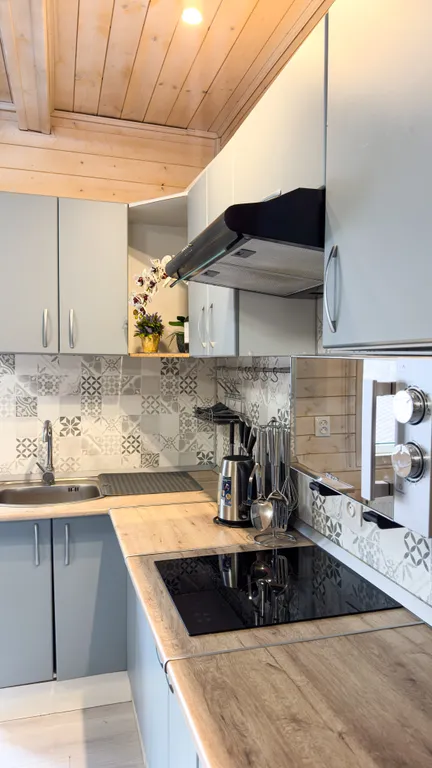 Имеет 3 уютных спальни с приятным интерьером и гостиную.
