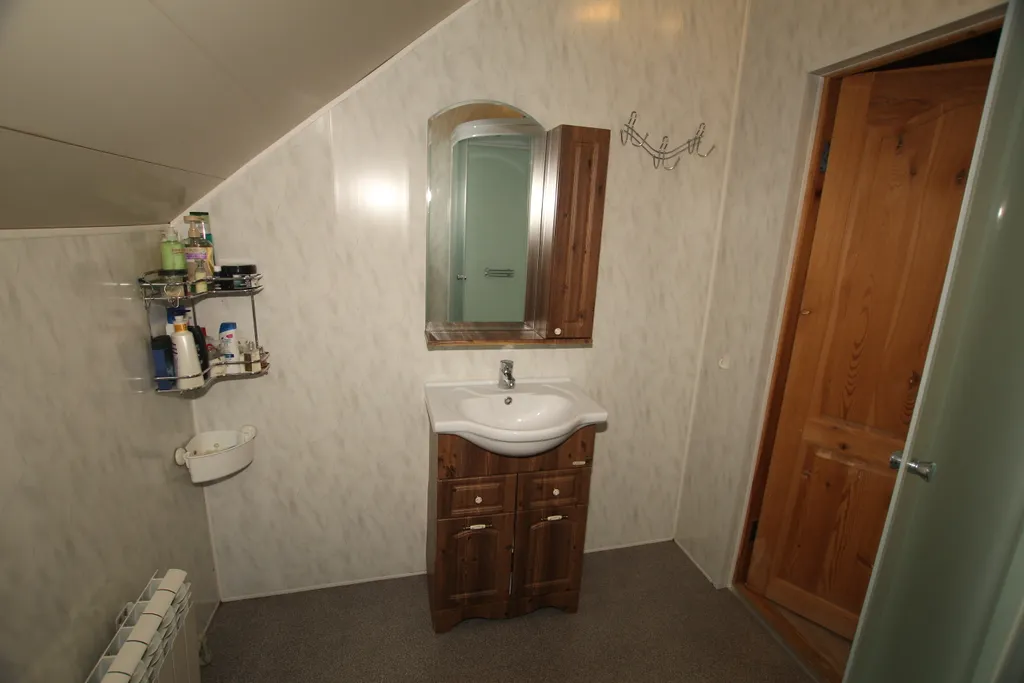В доме тепло: комфортный климат постоянно поддерживается за счёт отопления и внутренней отделки деревом.