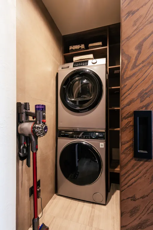 -Полностью оборудованная кухня с современной техникой, включая системы стирки и сушки белья.