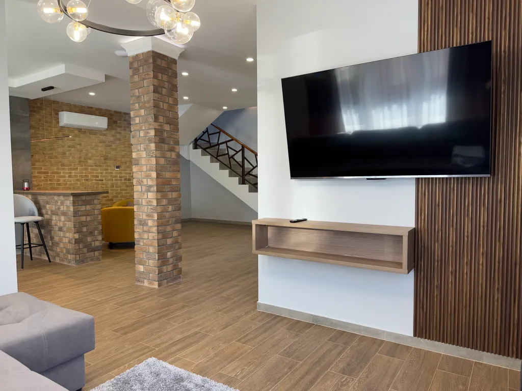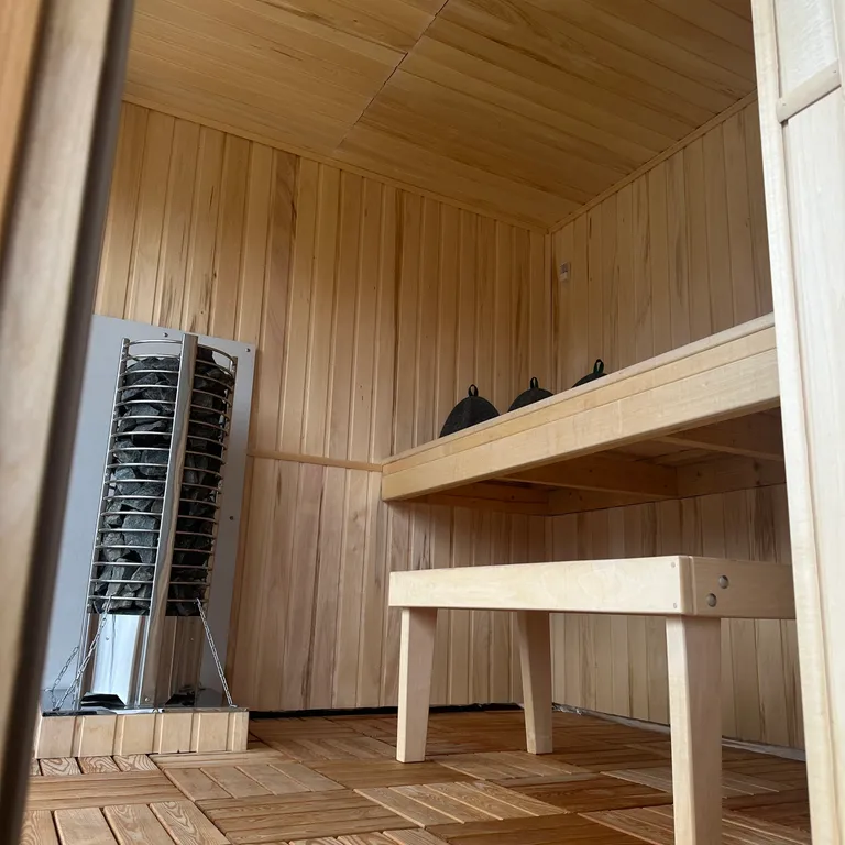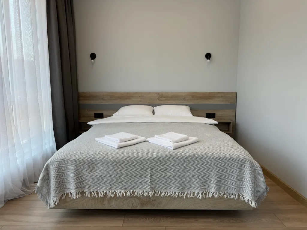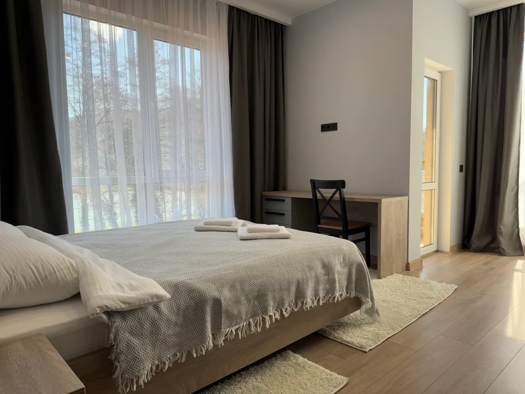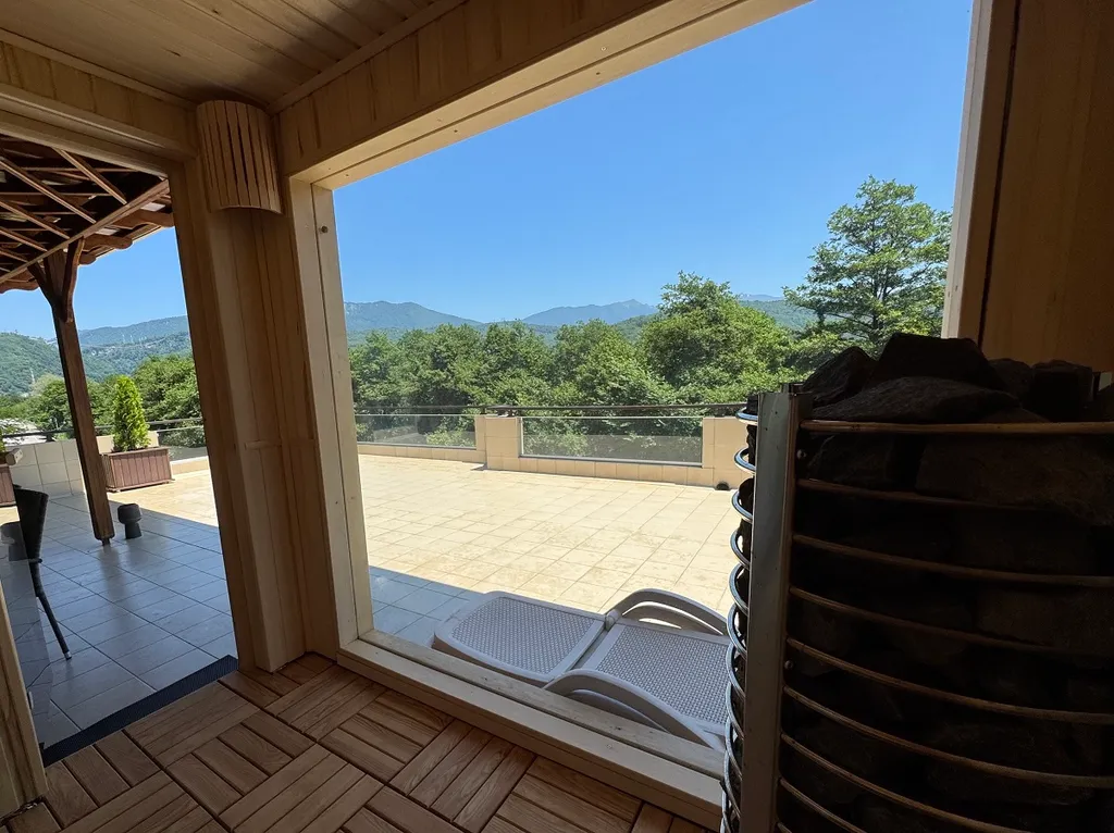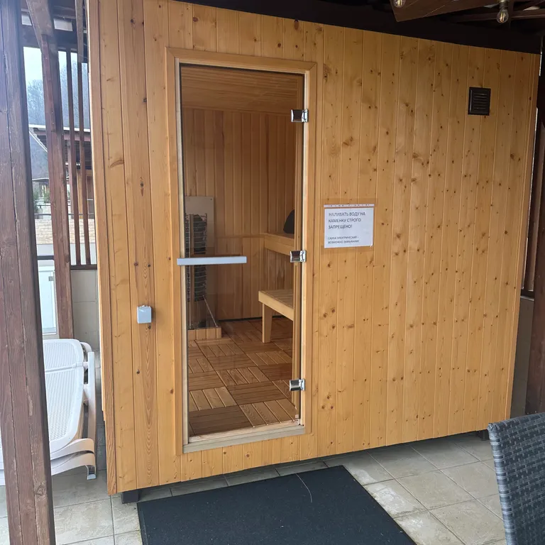 В каждой вилле: три просторные спальни с двуспальными кроватями и личными балконами, большая гостиная с раскладным диваном, оборудованная кухня, две комфортные ванные комнаты и приватная сауна на верхнем этаже со смотровой террасой. Для вас — собственный уютный двор с летней кухней, зоной барбекю и зелёным садом, отлично подходящим для вечеров с семьёй или компанией друзей.