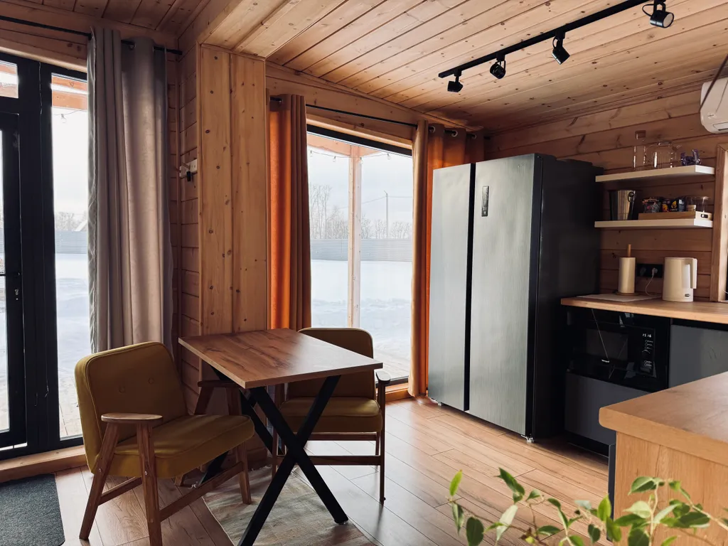 Современный дом для отдыха с баней. Просторный дом с панорамным остеклением, современной техникой и всеми удобствами.