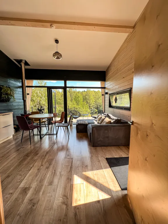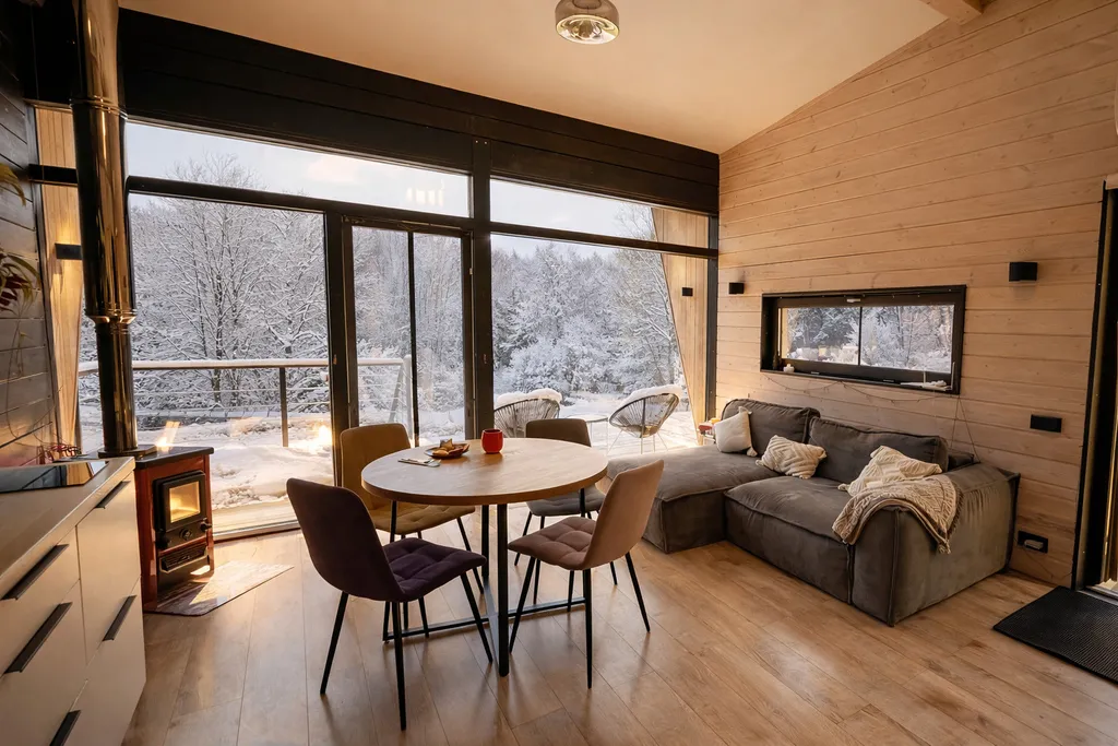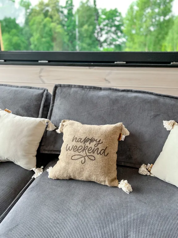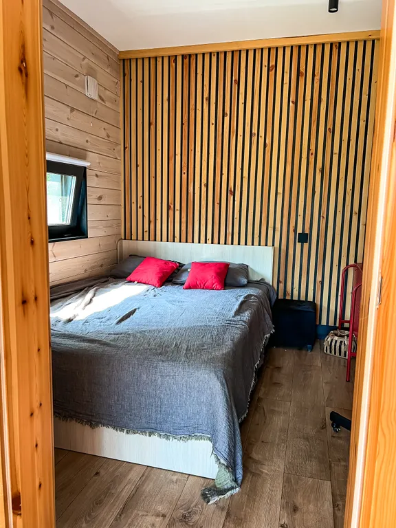 В доме отдельная спальня с двухспальной кроватью. В просторной гостиной находится раскладной диван.