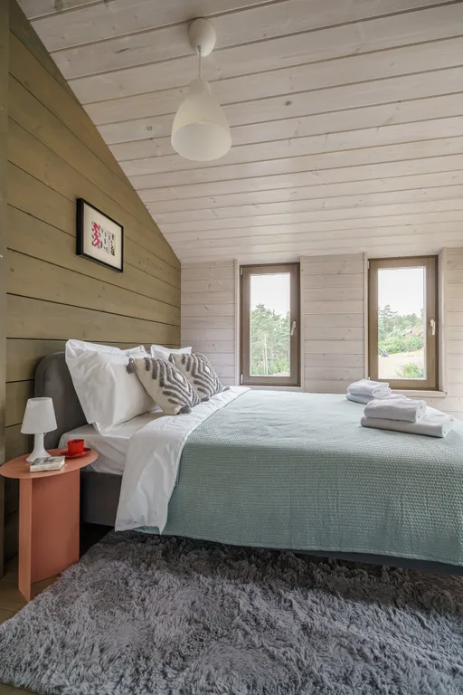 В этом доме с максимальным комфортом могут жить 5 человек, располагаясь в удобных спальнях, однако, по запросу мы можем разместить до 7 человек на дополнительных спальных местах (двуспальный диван-кровать в гостиной) за дополнительную плату 1000 руб. в сутки за каждое доп. место.