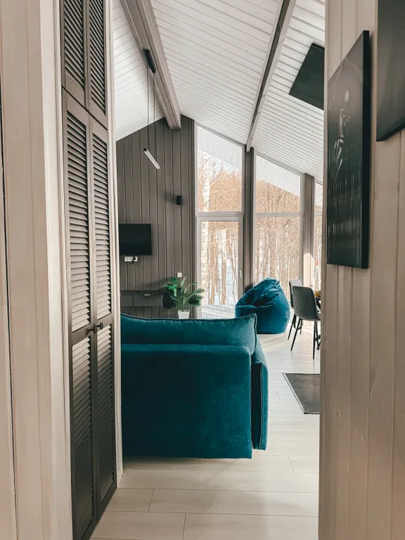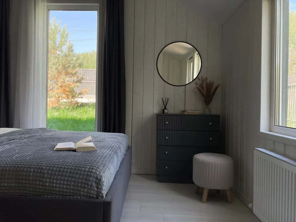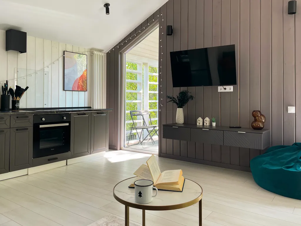 Здесь вы можете перезагрузиться не только вдвоем, но и компанией побольше – возможно размещение до 6-ти человек. Есть 2 комнаты с двуспальной кроватью, а в просторной гостиной раскладной диван. По запросу установим детскую люльку.