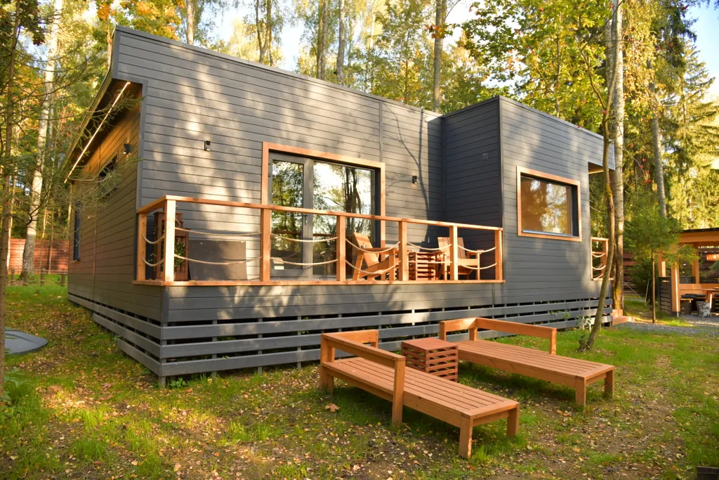 Описание: гостевой дом премиум-класса для 4–6 гостей, расположенный в живописном месте с панорамным видом на лес и реку. Это идеальное предложение для тех, кто ищет полное погружение в природу с комфортом.