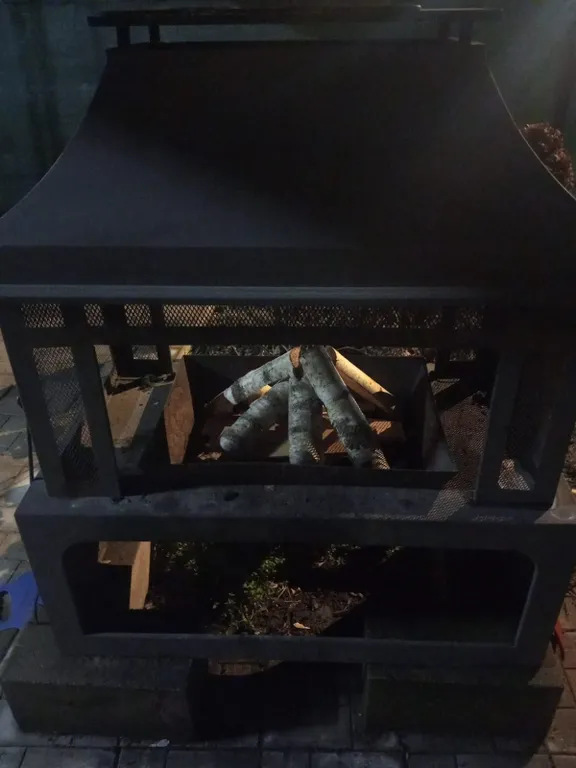Уличная зона отдыха: мангал, стол и лавочки под навесом – идеальное место для вечерних посиделок.