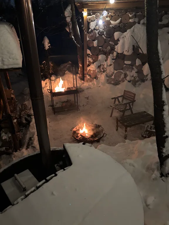 - На участке: горячая купель, мангал, костровая чаша, парковочное место.