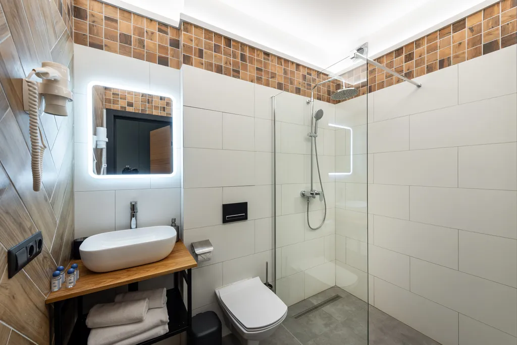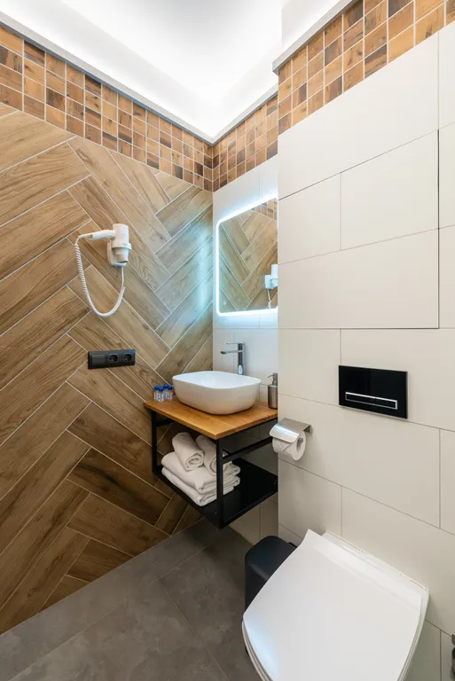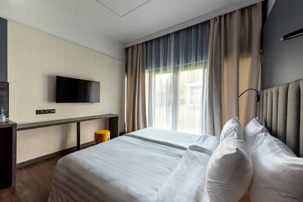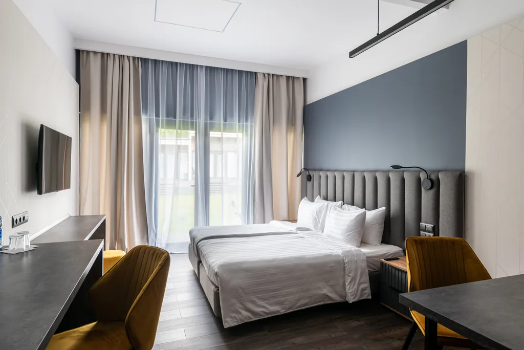 Мы заботимся о вашем комфорте, поэтому двуспальная кровать оснащена удобным ортопедическим матрацем, во есть кондиционеры и теплый пол в ванной комнате.