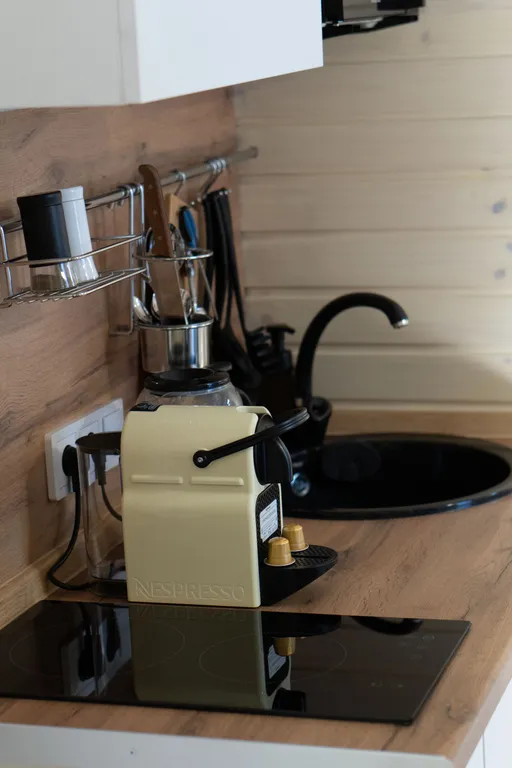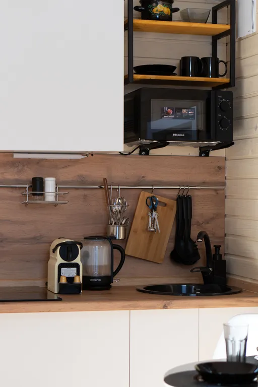 Укомплектованная кухня - холодильник, чайник, кофемашина и прочая необходимая кухонная утварь. Имеется утюг и гладильная доска, кондиционер, TV, Wi-Fi, на общей территории имеется стиральная машина в доступе 24/7.