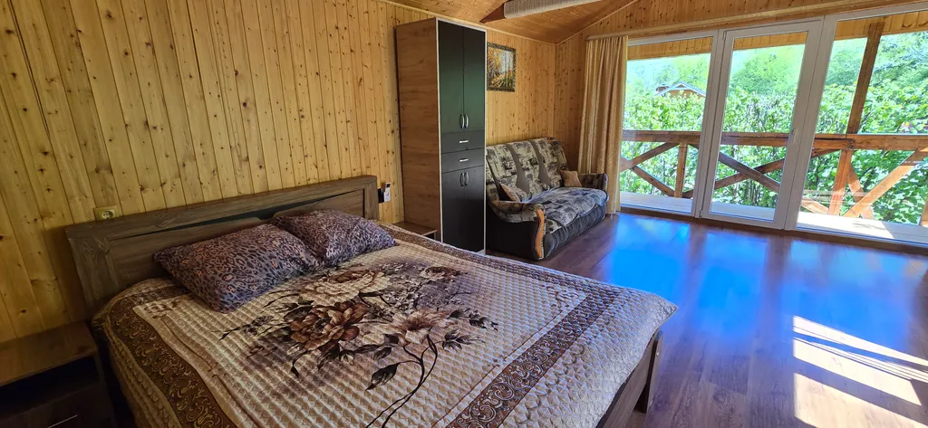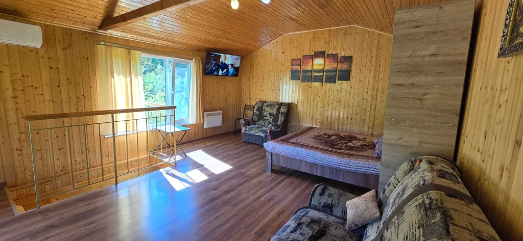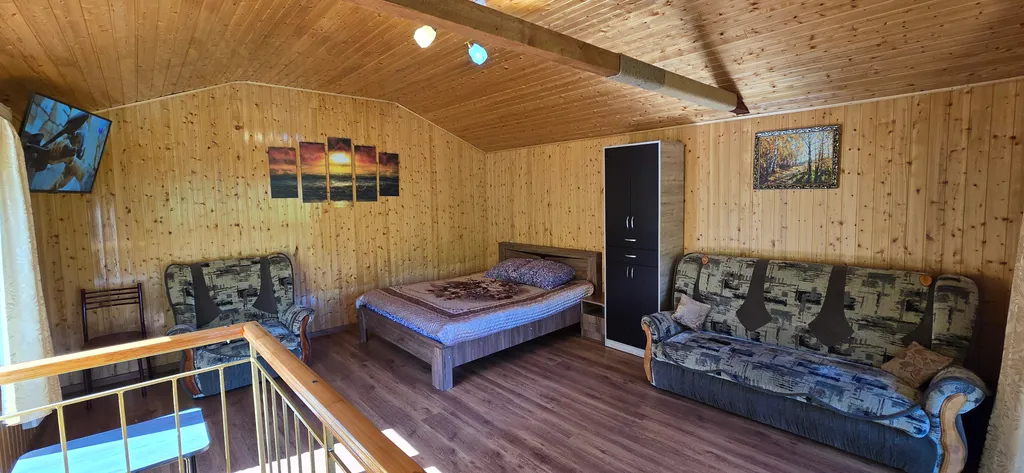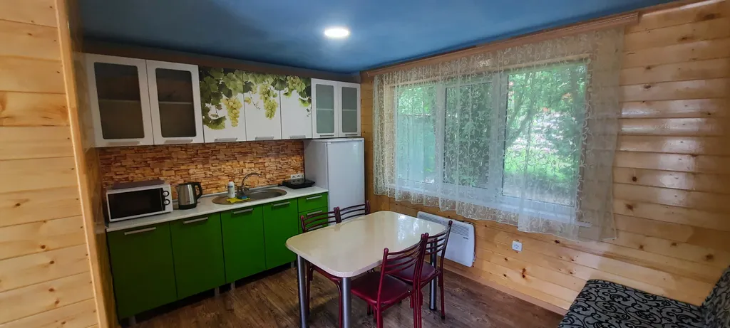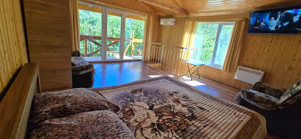 Спальня оборудованная двуспальной кроватью, двуспальным раскладным диваном, раскладным креслом, шкафом, конвекторным обогревателем и кондиционером, которые обеспечивает комфортную температуру в помещении, телевизором(смарт tv)! Кухня-столовая оборудована (кухня, стол, стулья, диван), бытовой техникой(микроволновая печь, эл. Чайник, индукционная плита, холодильник, конвекторный обогреватель, бойлер), в наличии вся необходимая посуда.