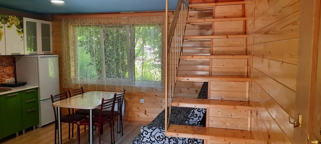 Домик расположен в живописном уголке крыма в самом красивом месте села соколиное, за окном домика бежит по перекатам "голубоглазая речка" коккозка и простилается крымский лес, для тех кто любит тишину и уединение! Домик у речки киви это двухэтажный домик. Первый этаж оборудован