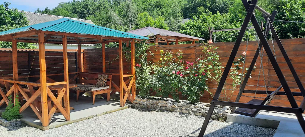 Место для отдыха на территории: беседка, стол, скамейки, мангал, качель!
