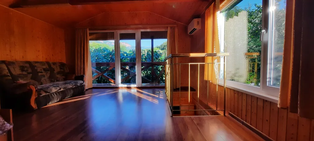 Красивая лестница поднимается на второй этаж, где расположена спальня с балконом, оборудована панорамным окном с видом на г. Ай-петри, г. Бойко, г. Орлиный залёт!