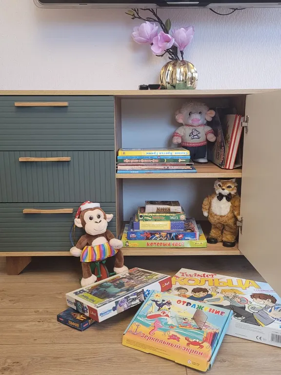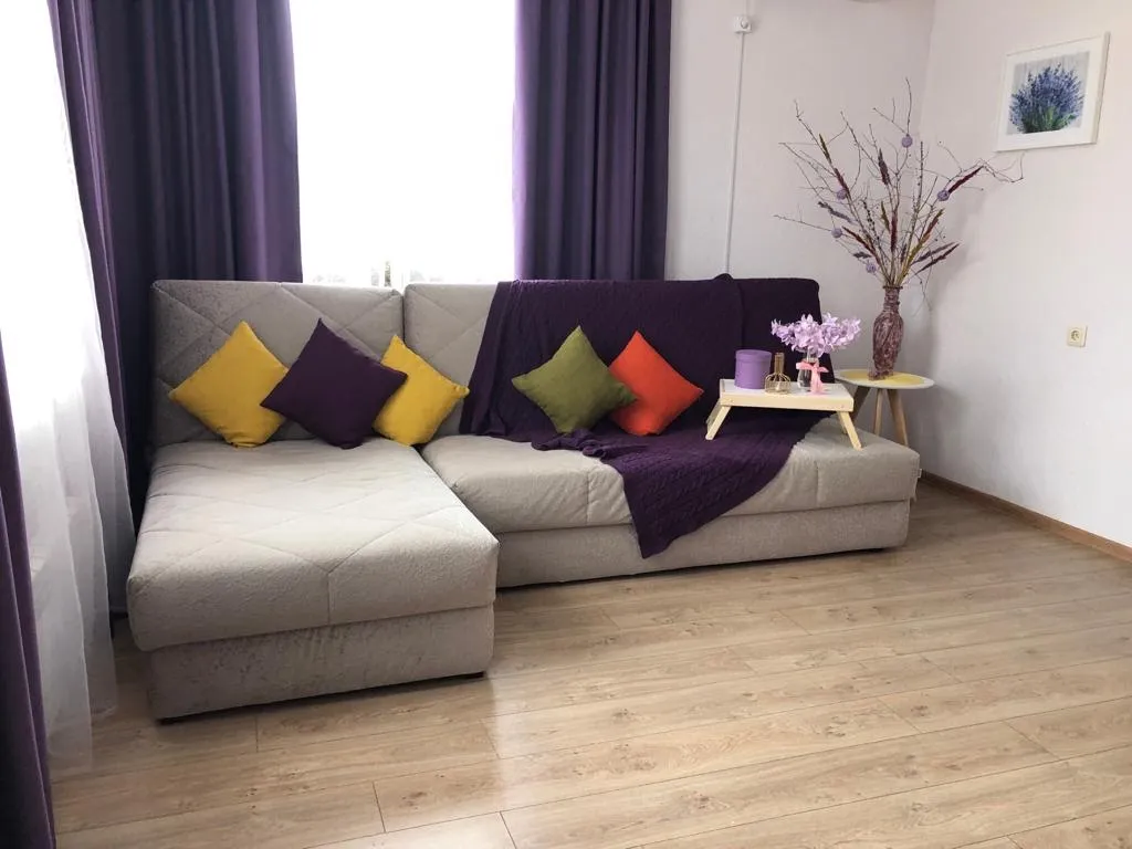 Гостиная: 2-спальный комфортный диван + оттоманка — 1,5 спальное место.