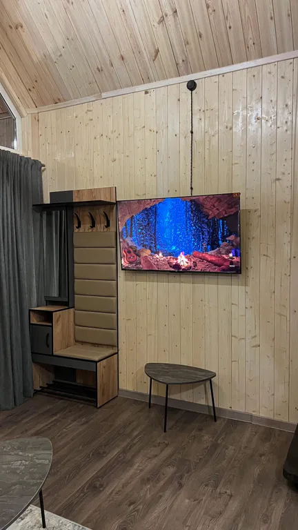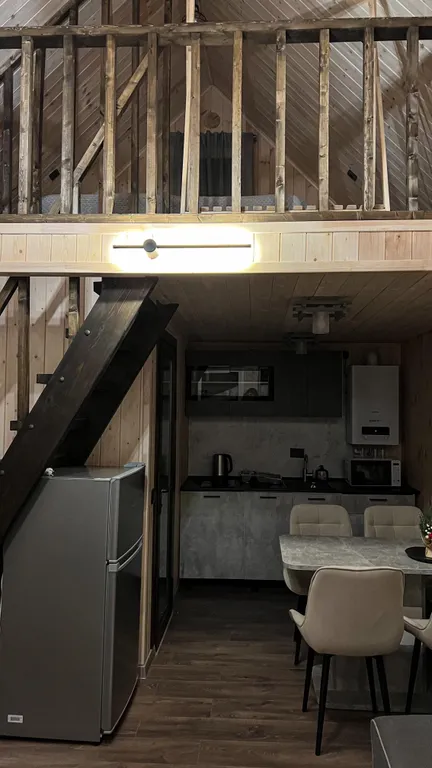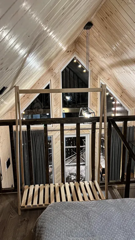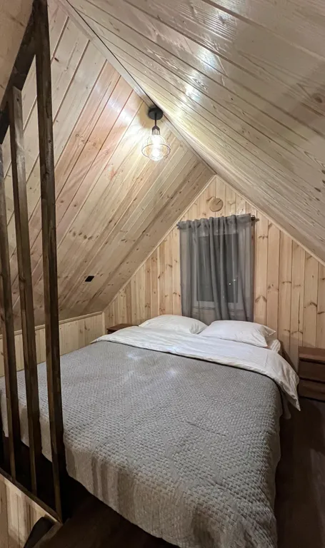 Спальня на 2 этаже, диван раскладной на 1 этаже и одно кресло-кровать.