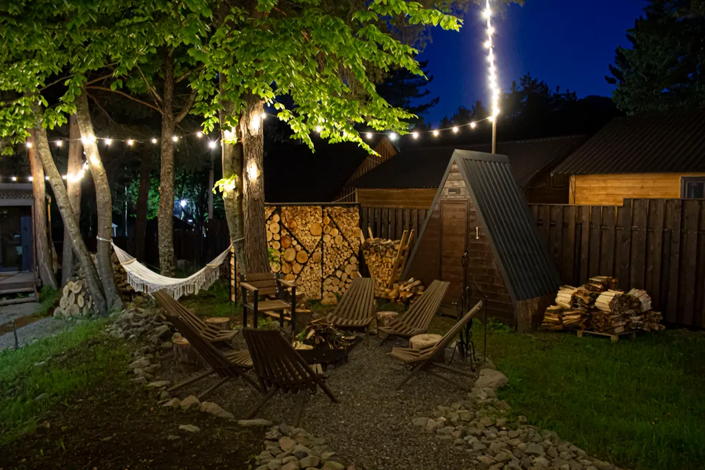 Мангальная зона на свежем воздухе, где можно пожарить шашлыки и провести время с друзьями.
