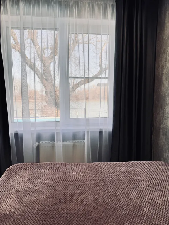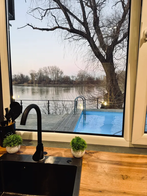 В доме панорамное остекление, красивый вид на бассейн и реку Кубань.