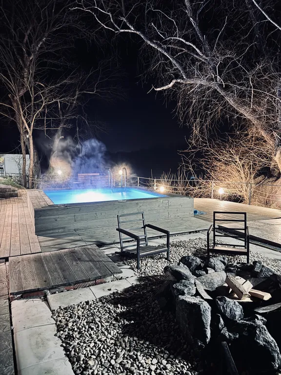Баня на дровах с выходом к бассейну