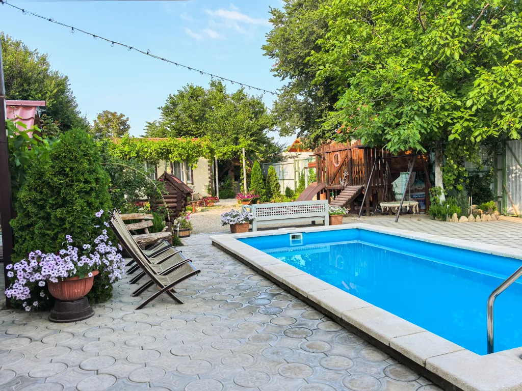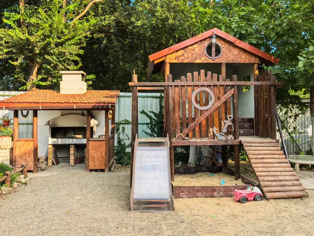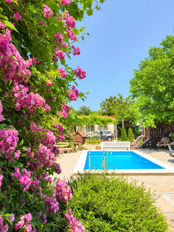 На территории: мангальная зона, большой бассейн (с подогревом до 10 июня и с конца августа), парковочное место, детская площадка, песочница в тени, качели, игровой комплекс с домиком, игровая комната.