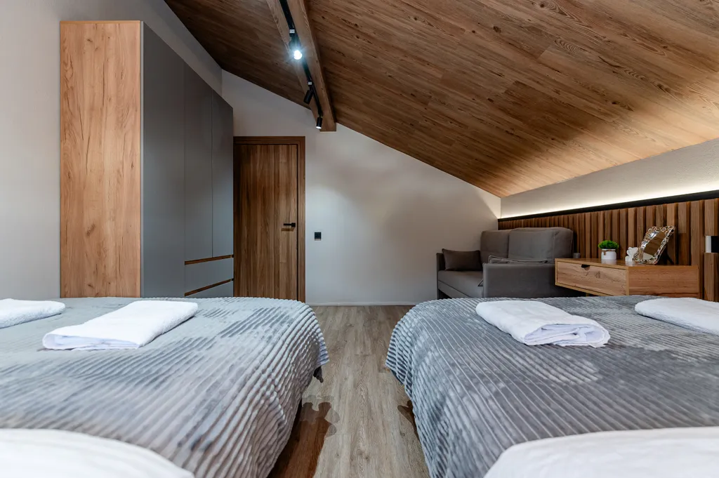 Всё для отдыха большой компании: несколько зон отдыха, полностью оборудованная кухня, удобные спальные места.