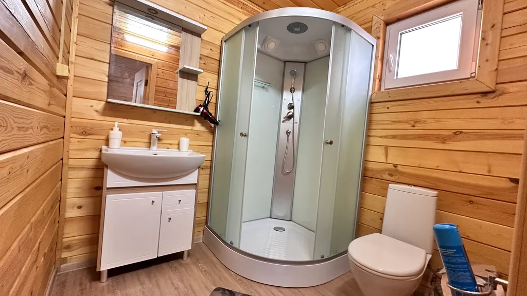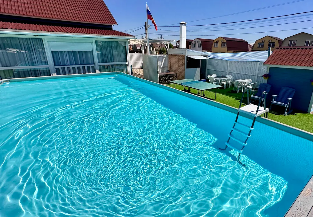 У коттеджа отдельный двор, авто можно поставить во дворе. Видеонаблюдение. На отдельном дворе бассейн 5мна 10м рассчитана на три коттеджа. Зона отдыха оборудована мангальная зоной, теннис, детский домик, шезлонги.