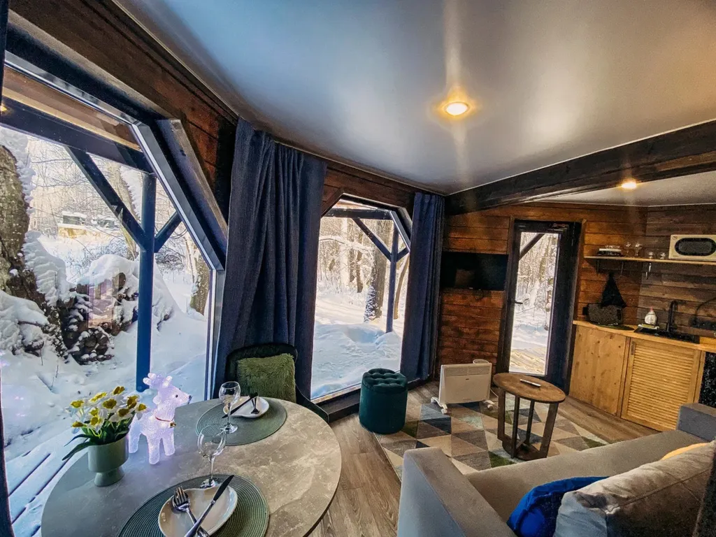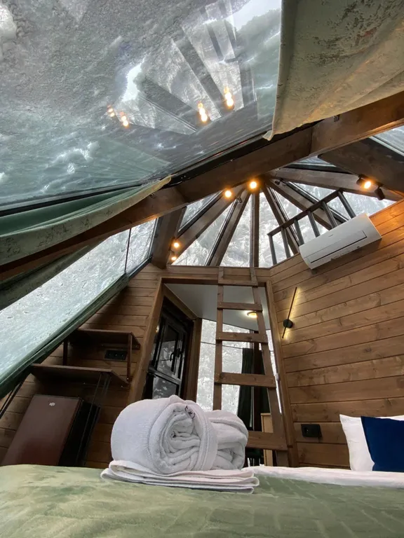 Все наружные стены от пола до потолка, кроме санузла, сделаны из специального умного стекла — находясь в нём вы почти внутри дикого первозданного леса, но при этом в безопасности и комфорте люксового отеля.