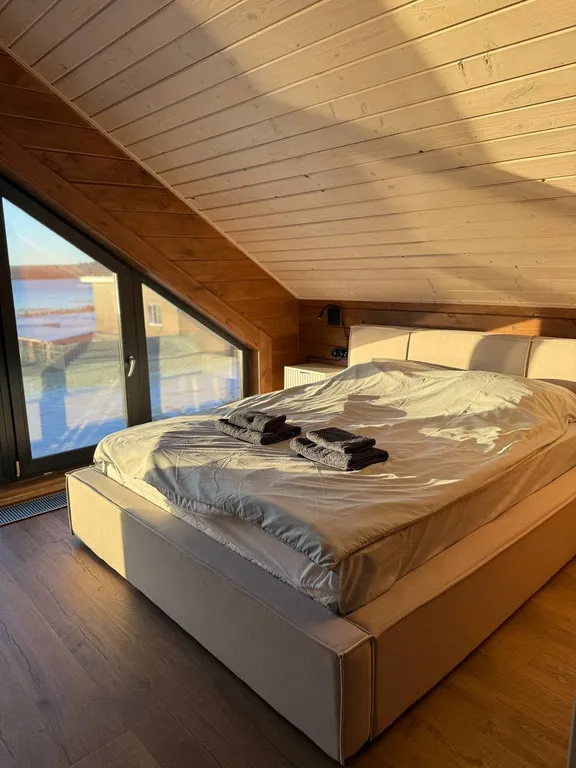В доме 3 отдельные комнаты + кухня-гостиная с комфортабельным раздвижным диваном