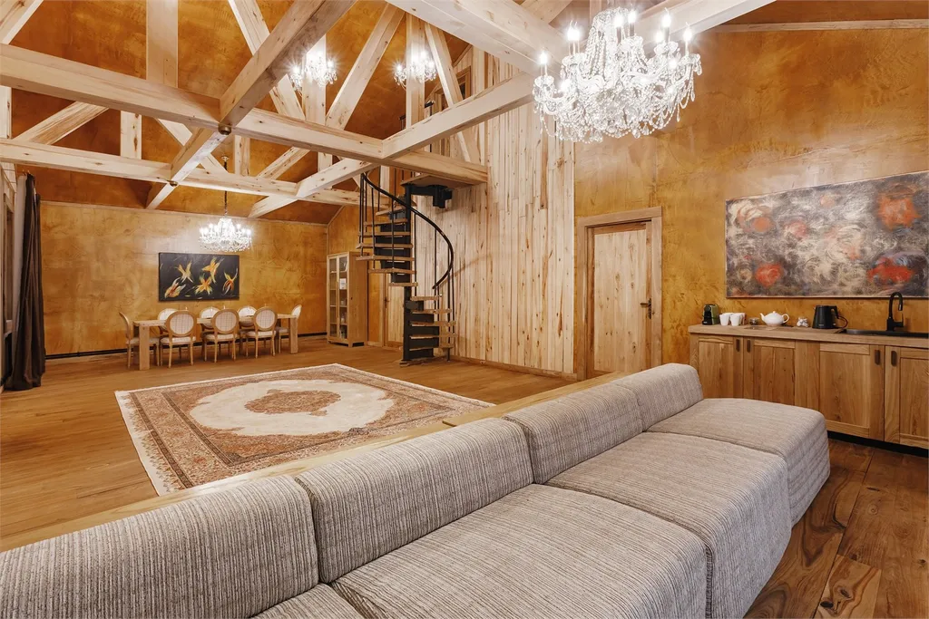 Двухэтажный представительский коттедж «Кандинский», расположенный в окружении берёзового леса, идеально подойдёт для большой семьи или компании друзей, ценящих приватность и эстетику загородной резиденции. Это дом с характером, в котором динамика абстракции соединяется с тишиной природы.