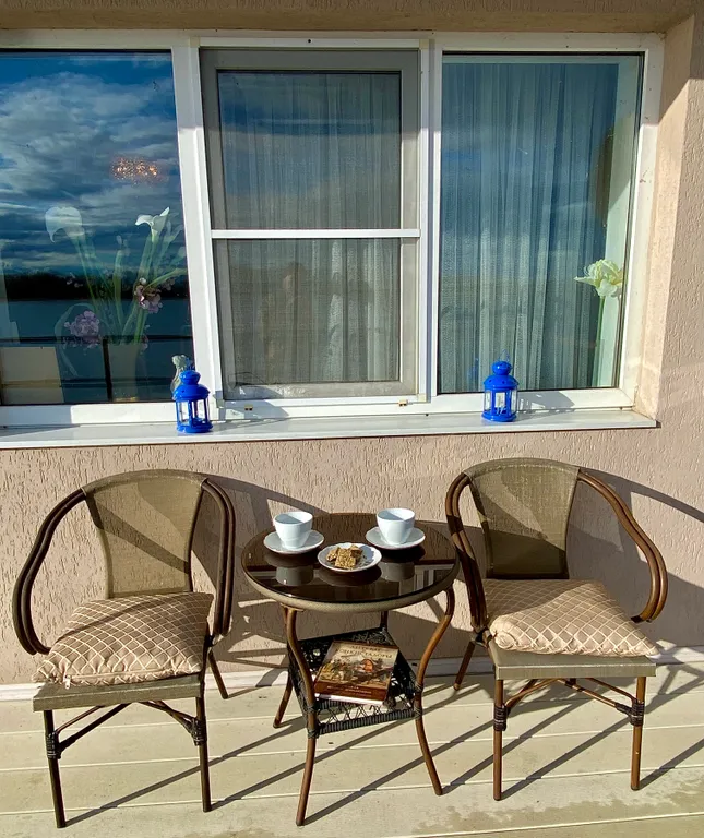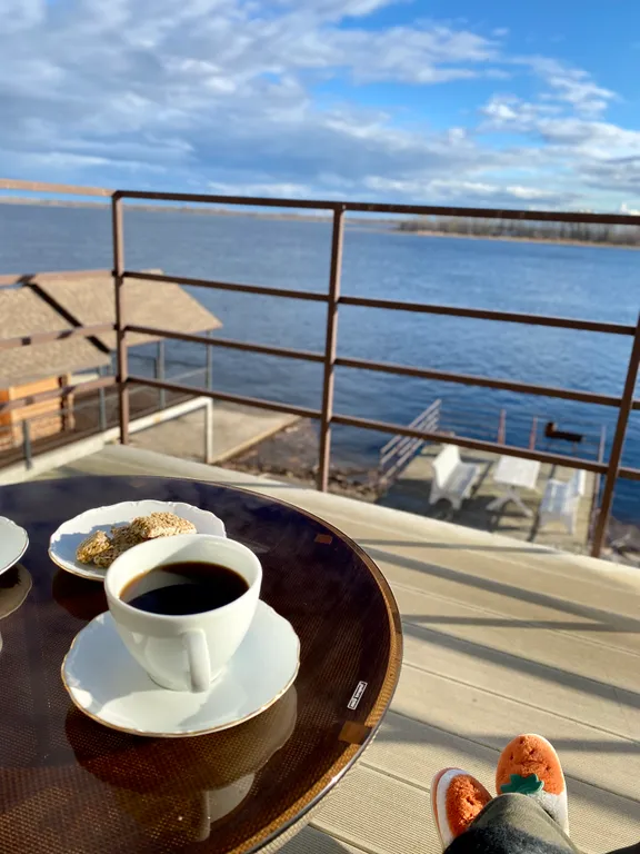 Солнечная терраса с видом на Волгу — идеальное место для завтрака или вечернего ужина или просто отдыха на воздухе